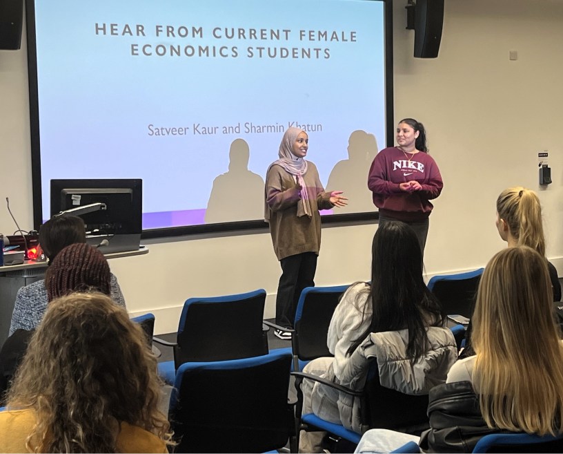 Leading female academics from the department of Finance and Economics were invited to come along to speak to the students to share their research interests and experiences as female leaders in the field of Economics and Finance. We would like to express our sincere thanks to Anna Egan, Head of the Finance and Economics Department and Dr Iwi Ugiagbe-Green, Reader in Accounting, alongside Sabaa Jahangir, Dr. Lin Lang, lecturers in Economics and Dr Katarzyna Werner-Masters, program leader in Economics, for their insightful and inspiring talks about their research and their experiences as women in the field. We would also like to take this opportunity to thank our two female students, Satveer Kaur and Sharmin Khatun, who did an incredible job at helping during the event and who were happy to share their insights of Economics from a female student perspective. And finally, we would like to express our gratitude to Liz Lufwa who took some amazing pictures during the event.