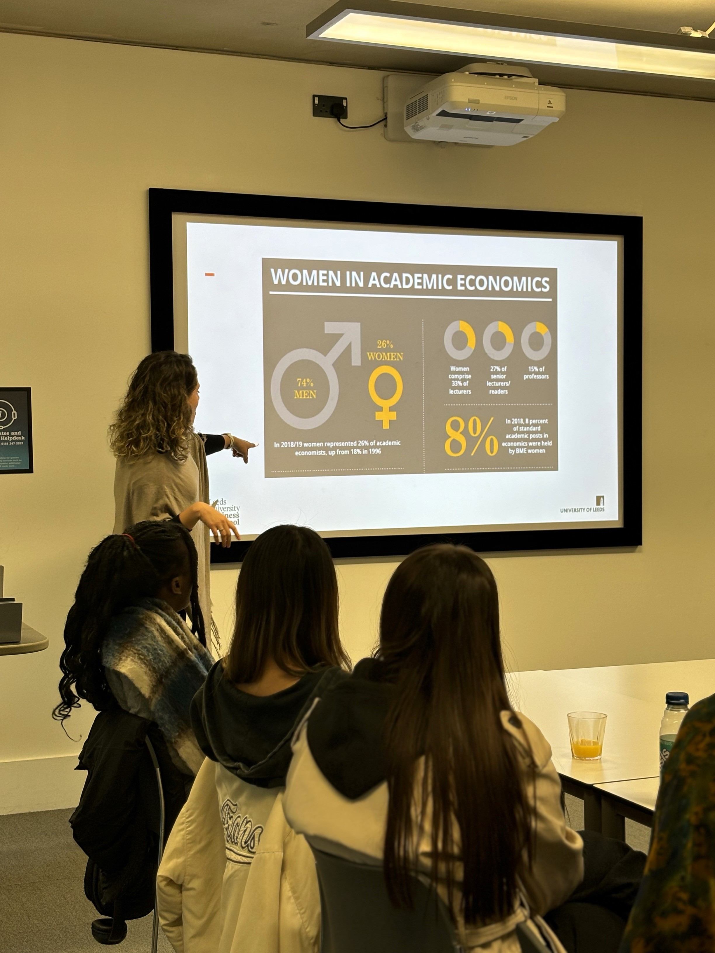 For the 2nd WEMS event held at the end of 2024, three guest speakers from academia and industry visited Manchester Met to share their experiences as female economists in a male dominated field. The event was supported by the newly established Corporate Women’s Society. Female economists from the Universities of Liverpool and Manchester as well as female economics students and staff from Manchester Met attended the event.