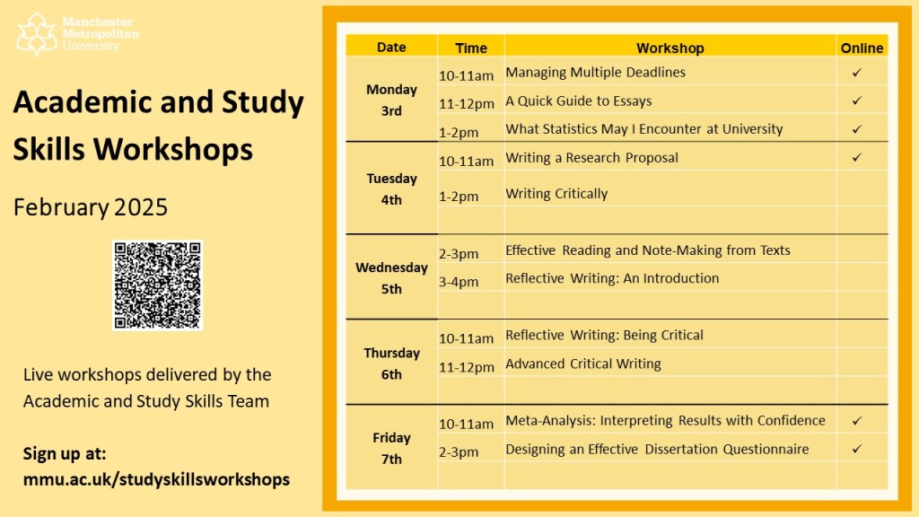 Here at Manchester Met, we have specialised study skills tutors ready to help you with: