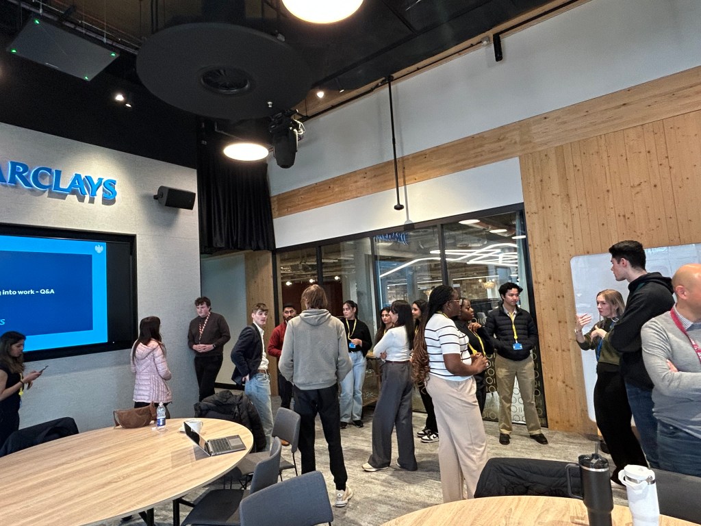 Students had the opportunity to visit Radbroke Campus and on the day completed a full tour of the Radbroke Campus, a one-of-a-kind state-of-the-art centre. After, they participated in a panel session on Tech Trends and transitioning into work. The final task of the day had been a networking event in which students were able to meet many different employees at Barclays and ask them plenty of questions to find out about their experience, skills, and roles within the bank.