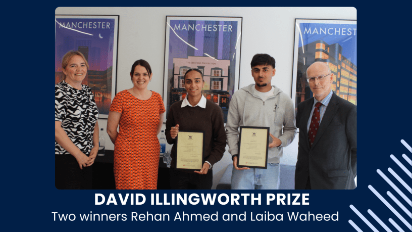 Two of our final year graduates from the Class of 2025 were awarded the David Illingworth Prize, which recognises excellence among students of accounting and related subjects at Manchester Metropolitan University, the University of Manchester’s Alliance Manchester Business School (AMBS) and the University of Salford.