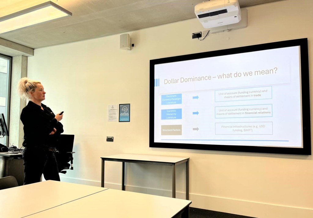Sophia reflected on the current international financial and monetary system showing how the US dollar not only dominates this system via its reserve status and its share of export invoicing and FX transactions, but also via established underlying structures that consistently generate demand for the dollar. After contemplating on issues such as the unjustified unbalanced IMFS, dependency on the dollar provision by sovereign states as well as the inherent geopolitical power in tandem with a declining corresponding banking network leads to increasing costs and declining efficiencies. The idea of multicurrency CBDC arrangements was floated as a potential alternative to the current unipolar system. An argument was then made that CBDCs offer a unique opportunity to fundamentally change the IMFS and with that the geopolitical space countries operate in. However, when looking at the UK and research concerned with its retail CBDC (digital pound) it was argued that the lack of a strategic approach by recent governments has meant the research seems rather vague and unorganised. A commitment to introduce a retail CBDC is also still missing. Similarly, while the importance of transnational cooperation in the set-up of CBDCs, their underlying technology and regulatory framework was cited, the geopolitical considerations did, other than potential sanction evasion by other countries, not enter the discussion, at least not from a government perspective. It was noted that, this is fundamentally different from the private sector view who attributes huge geopolitical importance to the creation of the digital pound, especially if used internationally.